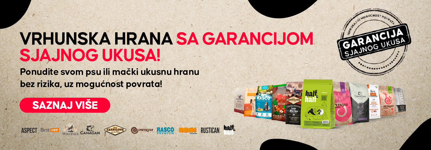 Ponudite svom ljubimcu ukusnu suvu hranu bez rizika, uz našu GARANCIJU SJAJNOG UKUSA! Sigurni smo da će se vašem ljubimcu dopasti.
