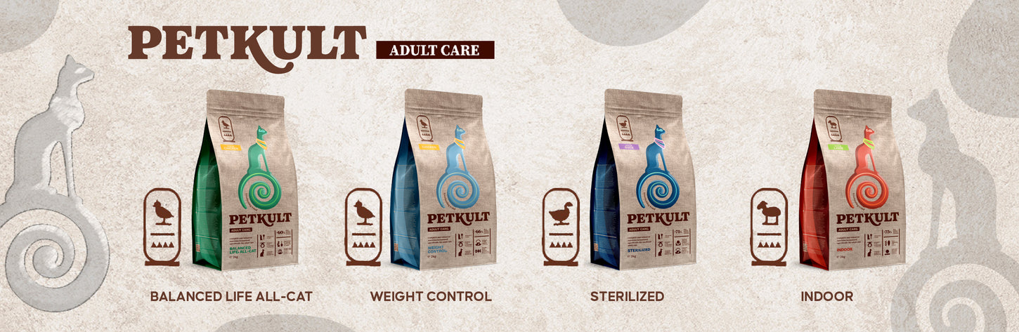 Petkult je kvalitetna - superpremium hrana za mačke bazirana na prirodnim sastojcima bez veštačkih boja i konzervansa. Fokus je na velikom udelu mesa i lako svarljivim sastojcima koji podržavaju zdravlje i vitalnost mačke. U ponudi su različite formule prilagođene uzrastu i specifičnim potrebama ljubimaca: