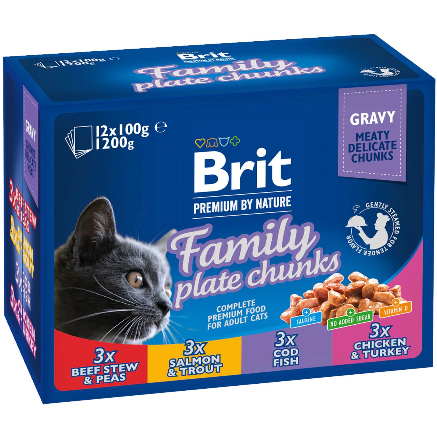 BRIT PREMIUM kesice, sočni komadići, family obrok, 12x100g