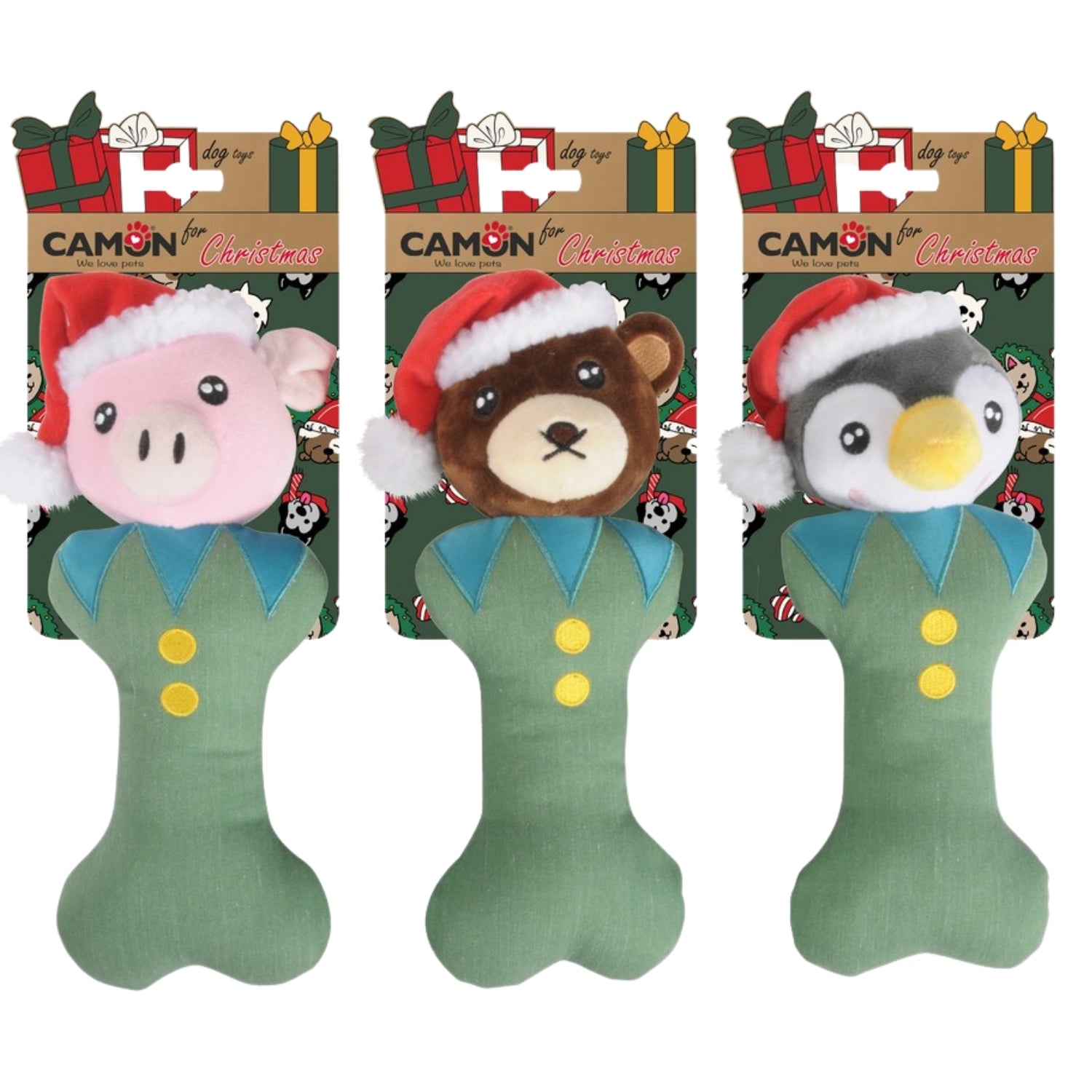CAMON Igračka za pse Koska Pingvin/Meda/Prase, zvučna, plišana, NG 27