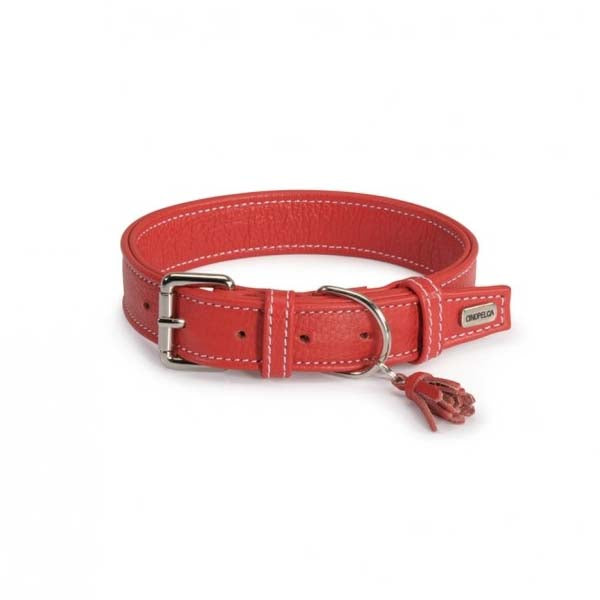 OUTLET CAMON Ogrlica za pse dvostruka koža sa kićankom Crvena