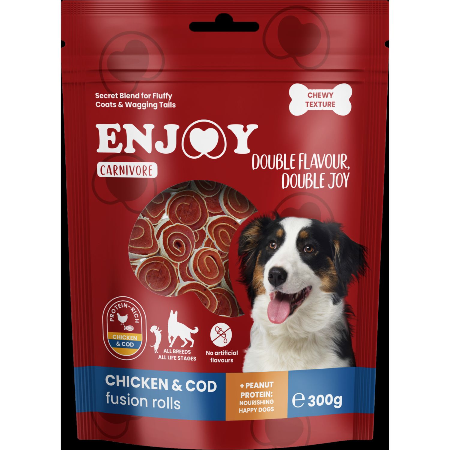 ENJOY Carnivore Poslastica za pse rolnice s piletinom i bakalarom, 300g