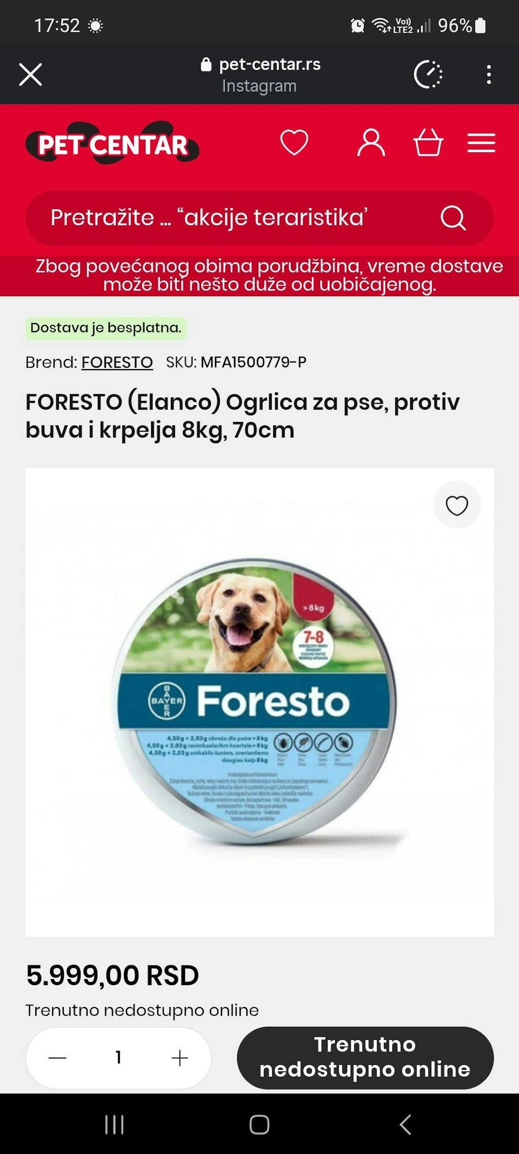 Dostupan samo u veterinarskoj apoteci Pet centra.
