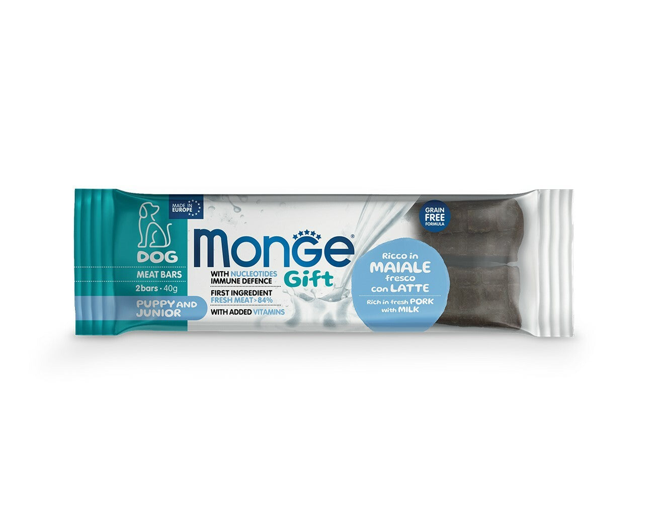 Monge Gift Puppy And Junior Dog Rich in Fresh Pork with Milk Meat Bars - MESNI BAR ZA ŠTENCE BOGAT SVEŽOM SVINJETINOM I MLEKOM, 40g