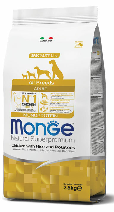 Monge Natural Superpremium All breeds Adult Monoprotein Chicken with Rice and Potatoes - PILETINA SA PIRINČEM I KROMPIROM - KOMPLETNA HRANA ZA ODRASLE PSE SVIH VELIČINA, 2,5kg