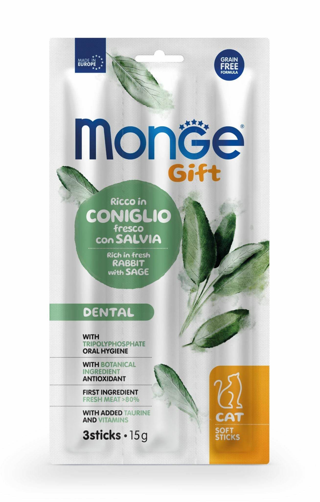 Monge Gift Dental Adult rich in Fresh Rabbit with Sage Soft Stick - ŠTAPIC´I ZA ODRASLE MACKE SA ZECETINOM I ŽALFIJOM