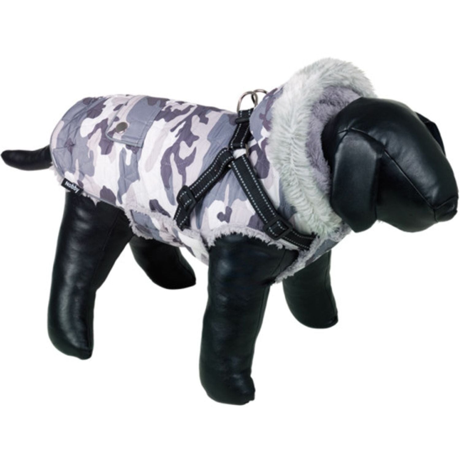 NOBBY Jakna za pse Polar 2u1, sa amom i odvojivom kapuljačom, Kamuflaž/Siva