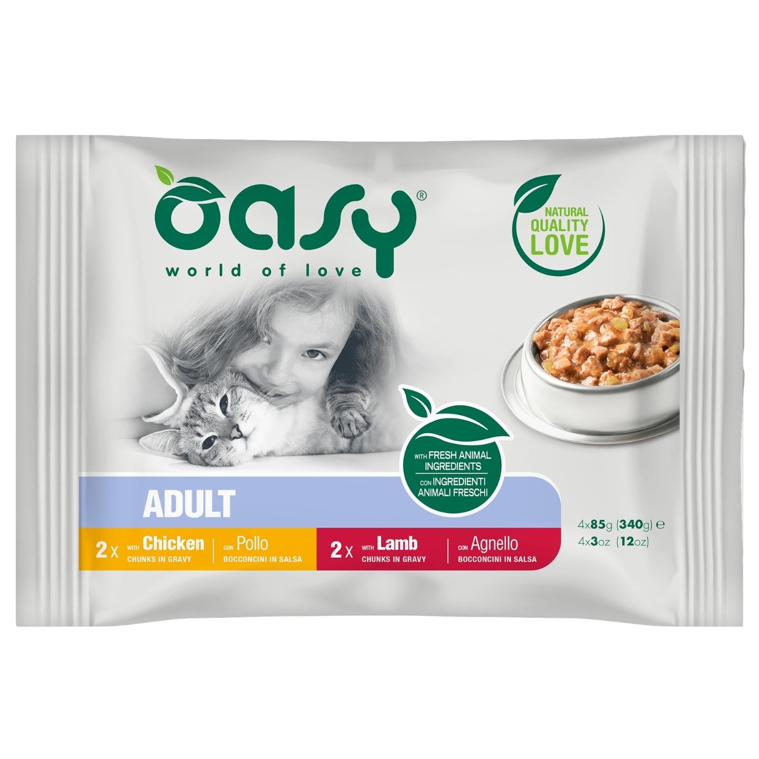 OASY Kesice za mačke, komadići u sosu s piletinom i jagnjetinom, 4x85g