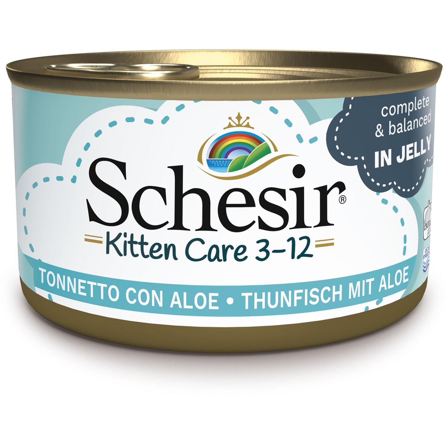 SCHESIR Konzerva za mačiće KITTEN (3-12m.) s tunjevinom i alojom, u želeu 85g