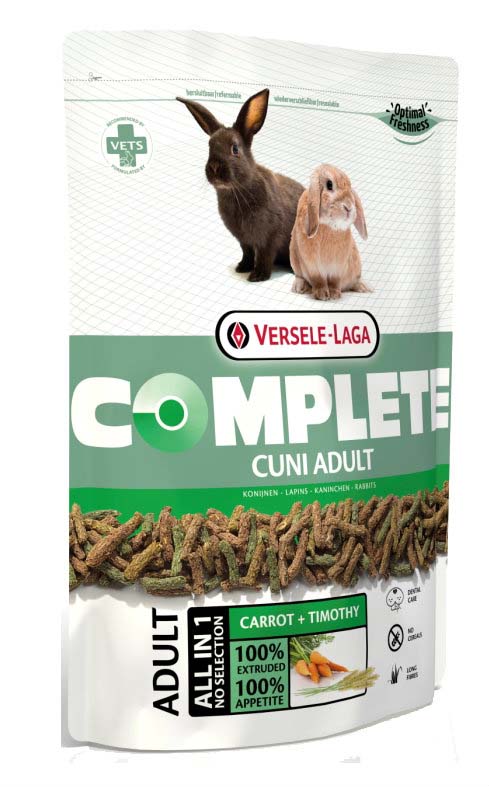 VERSELE LAGA Cuni Complete je ukusna hrana 100% sastavljena od lakosvarljivih i ekstrudiranih peleta. Duga vlakna u peletima osiguravaju lakše žvakanje i pravilno brušenje zuba. Dodatak svežeg povrća osigurava bolji ukus hrane. Velika količina dugih vlakana garantuje zdravije varenje. Specifična vlakna sprečavaju stvaranje kuglica dlake u sistemu za varenje.