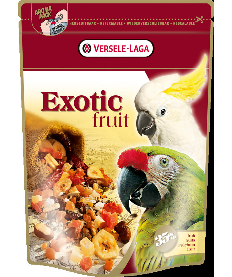 VERSELE LAGA Exotic Fruit Mix je hrana napravljena od pažljivo biranih isključivo svežih sastojaka. Fruit Mix je hrana i poslastica u jednom, bogata sušenim voćem (papaja, marelica, ananas).